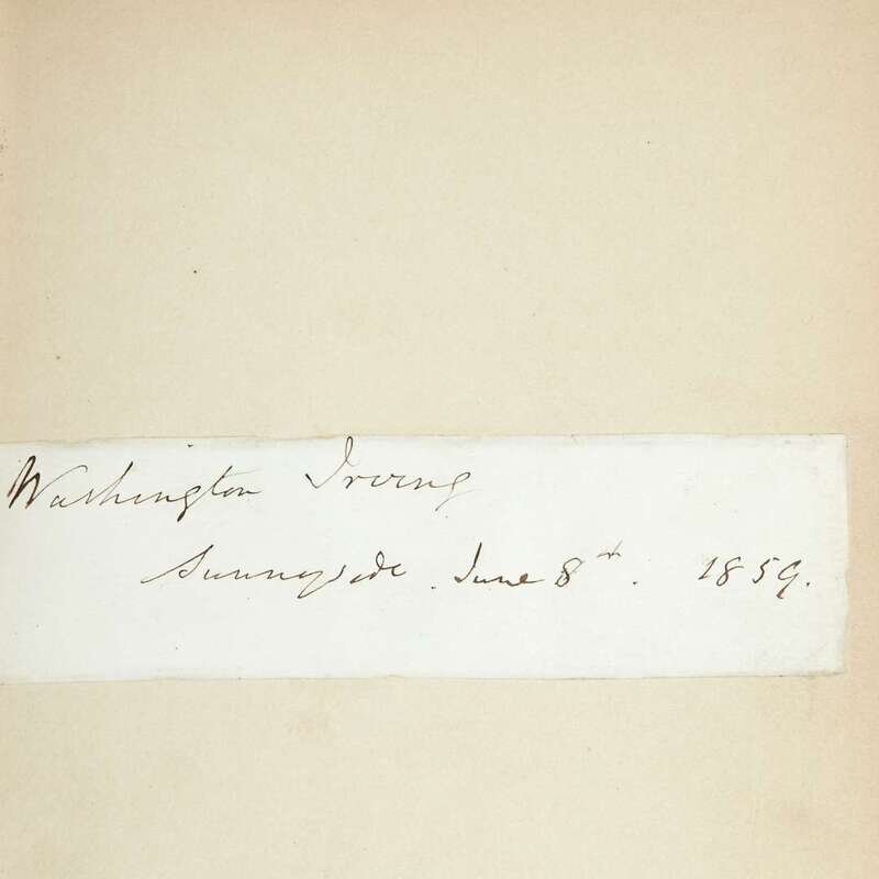 New York: G. P. Putnam, 1860. First edition. 8vo. Extra-illustrated copy with an additional title-page illustrated with a watercolor of Sunnyside, an Iriving cut signature, dated June 8th, 1859, and numerous engraved portraits of contemporaries and views. Contemporary three-quarter red morocco, stamped in gilt, over marbled paper-covered boards, joints and boards rubbed, corners moderately worn, scattered soiling; top edge gilt, other edges trimmed; marbled endpapers; scattered minor soiling to text, marginalia on recto of rear free endpaper.