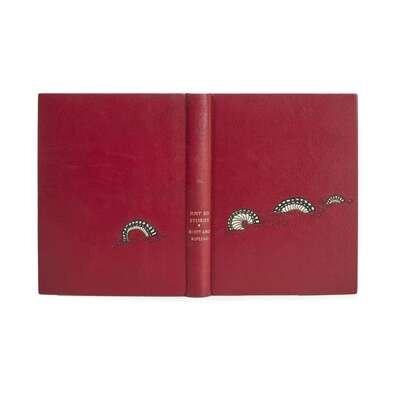 London: Macmillan and Co., Limited, 1902. First edition, first issue. 8vo. (vi), (252) pp. Illustrated with 22 plates and in-text illustrations by Kipling. Full red chieftan, stamped in gilt and in black, white and black leather onlay; all edges gilt; hand-made patterned endpapers; original cloth bound in at rear; for Asprey.