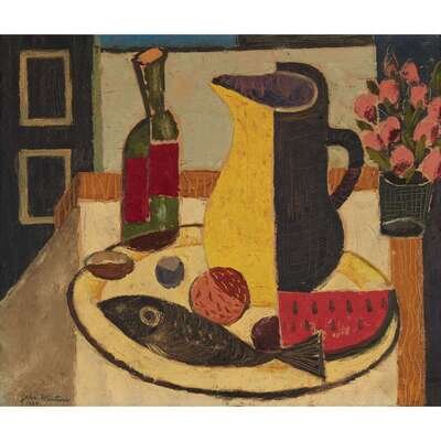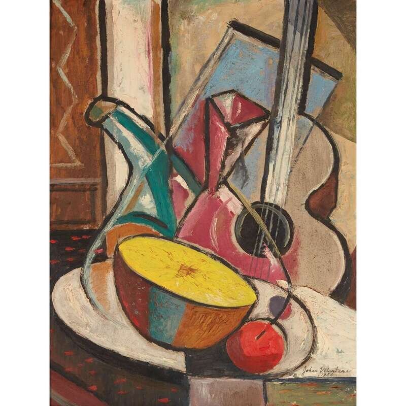 Two PaintingsJohn Winters (American, 1904-1983) Cubist Still Life with Watermelon