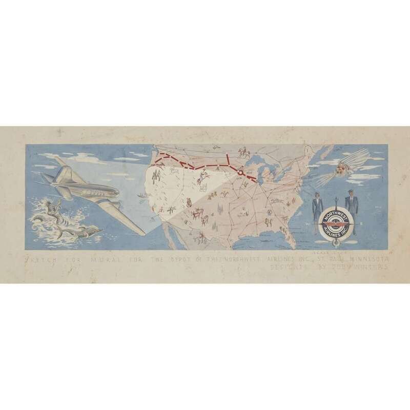 Three DesignsJohn Winters (American, 1904-1983) Design # 5 for Northwest Airlines Air Route Map Mural, Seattle