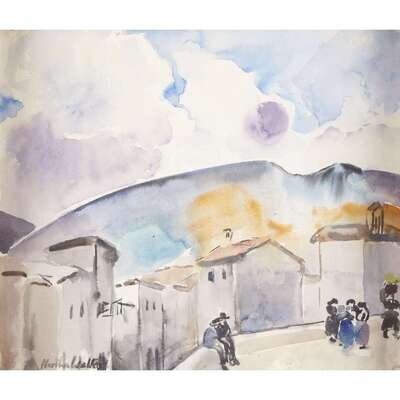 Martha Walter (American, 1875–1976) Village Scene (likely Piazza Seanno, Italy)