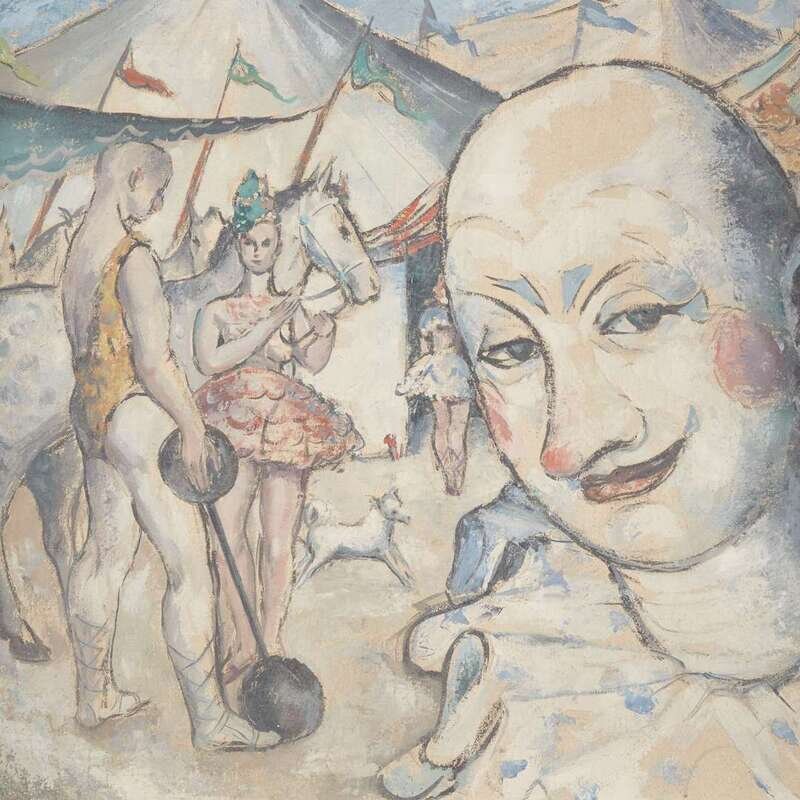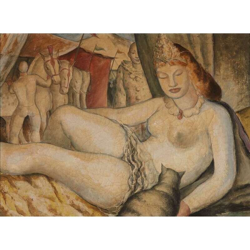 Three PaintingsJohn Winters (American, 1904-1983) Circus Performer with Cat