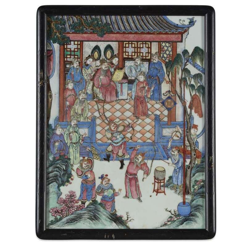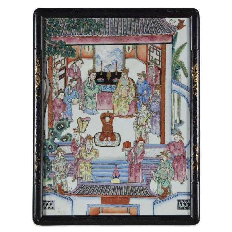 A pair of Chinese famille rose-decorated porcelain plaques 19th century