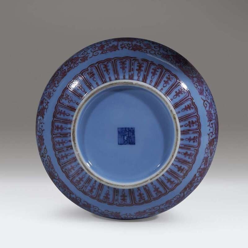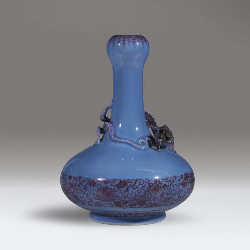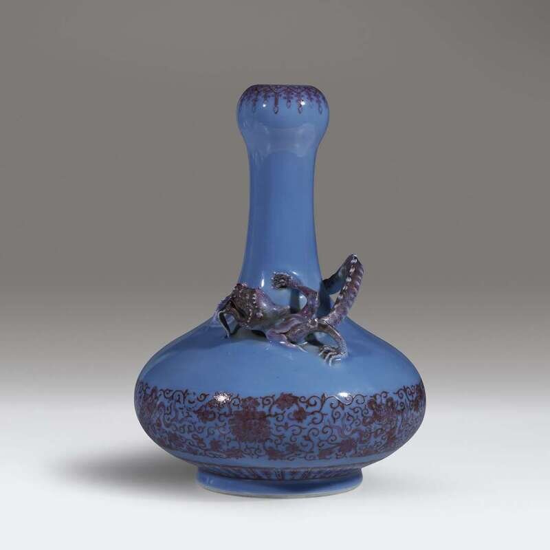 An unusual Chinese puce-enameled "Clair de Lune"-glazed "garlic-mouthed" vase Qianlong mark, probably 19th century or later