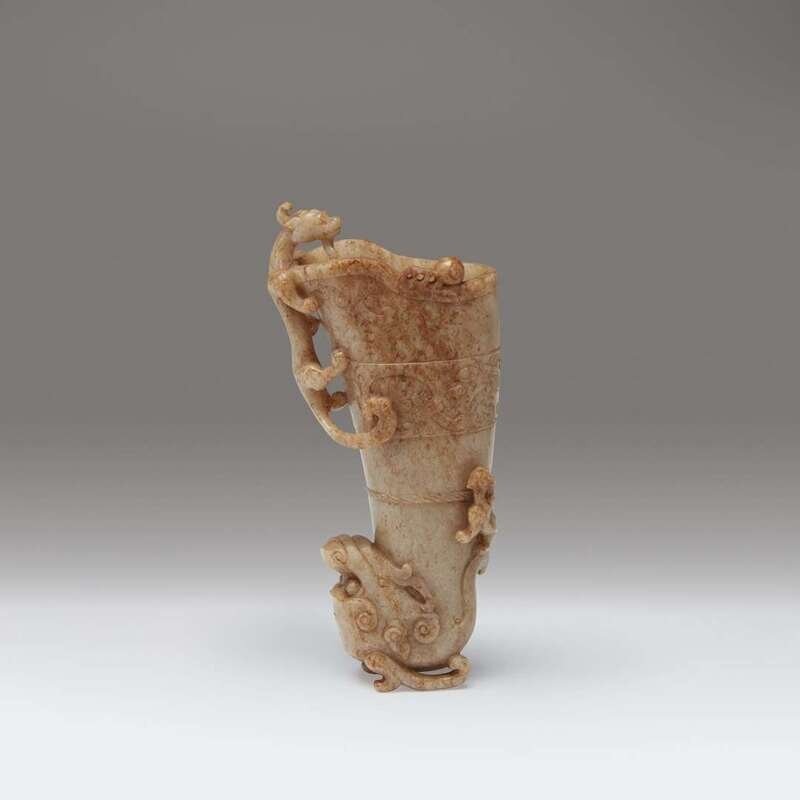 A Chinese russet and white jade archaistic rhyton