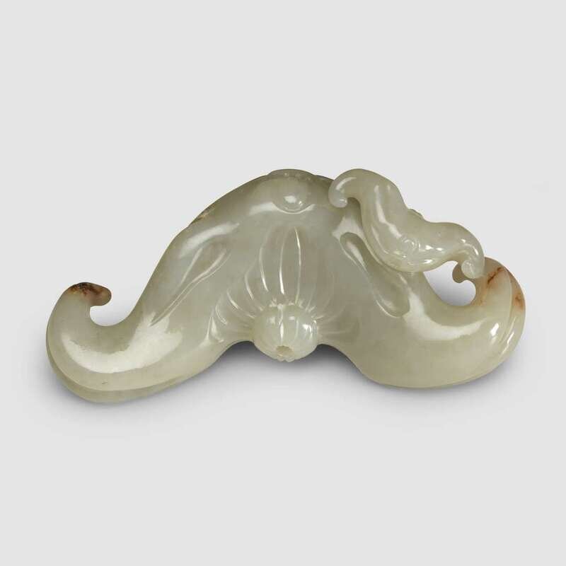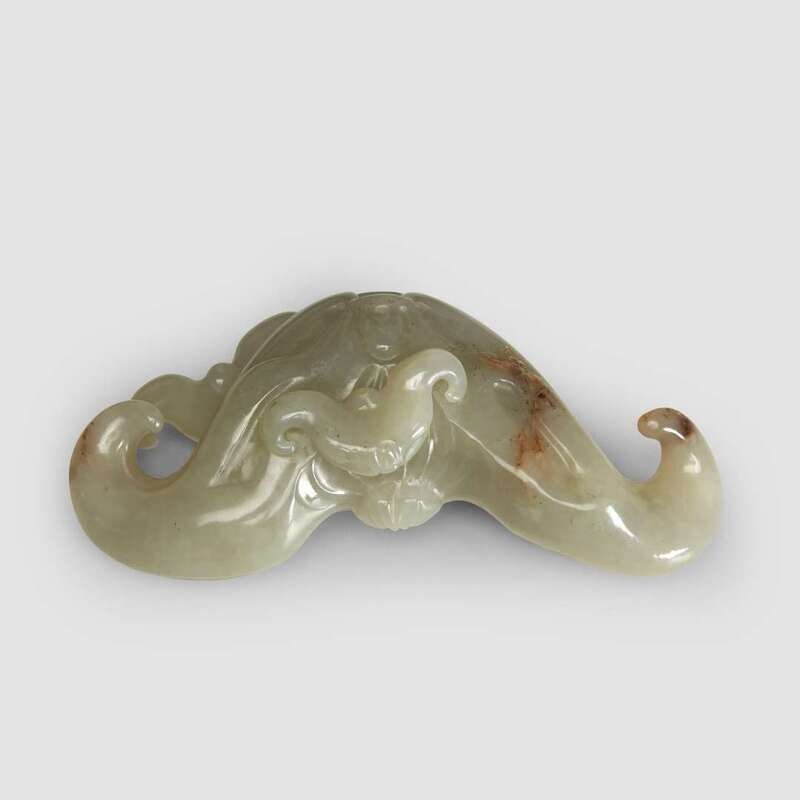 A Chinese pale celadon jade carving of a water caltrop 20th century