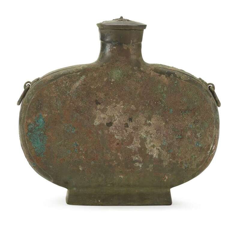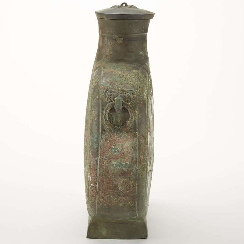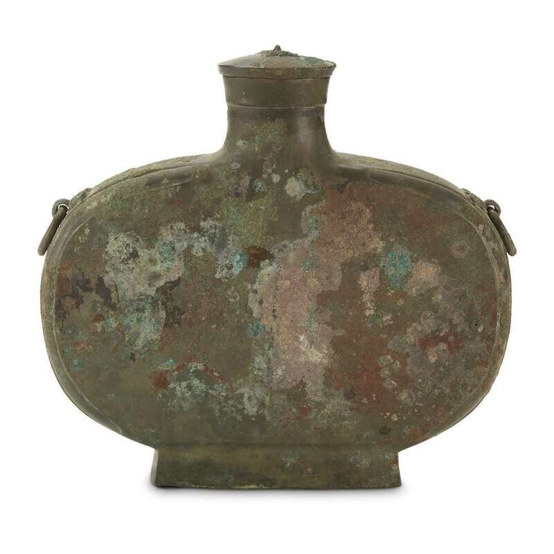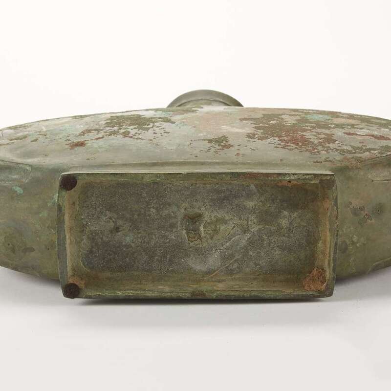 A Chinese archaic bronze vessel and cover, bianhu Han dynasty
