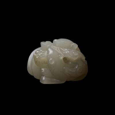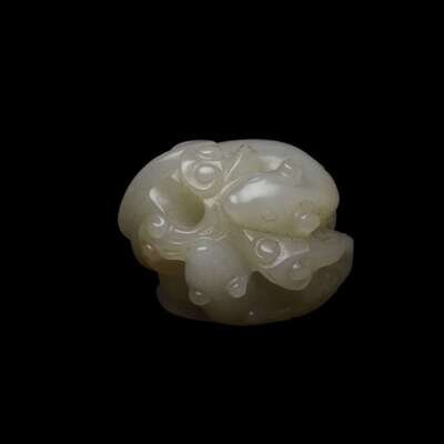 The stone of an even white tone, depicting the pair of long-tailed squirrels entwined around a vine.