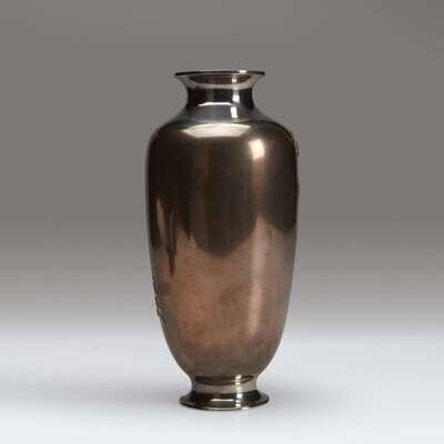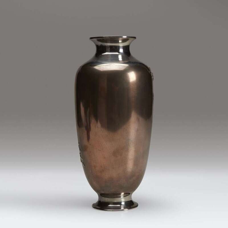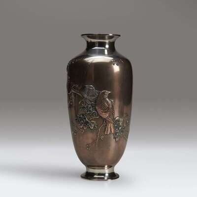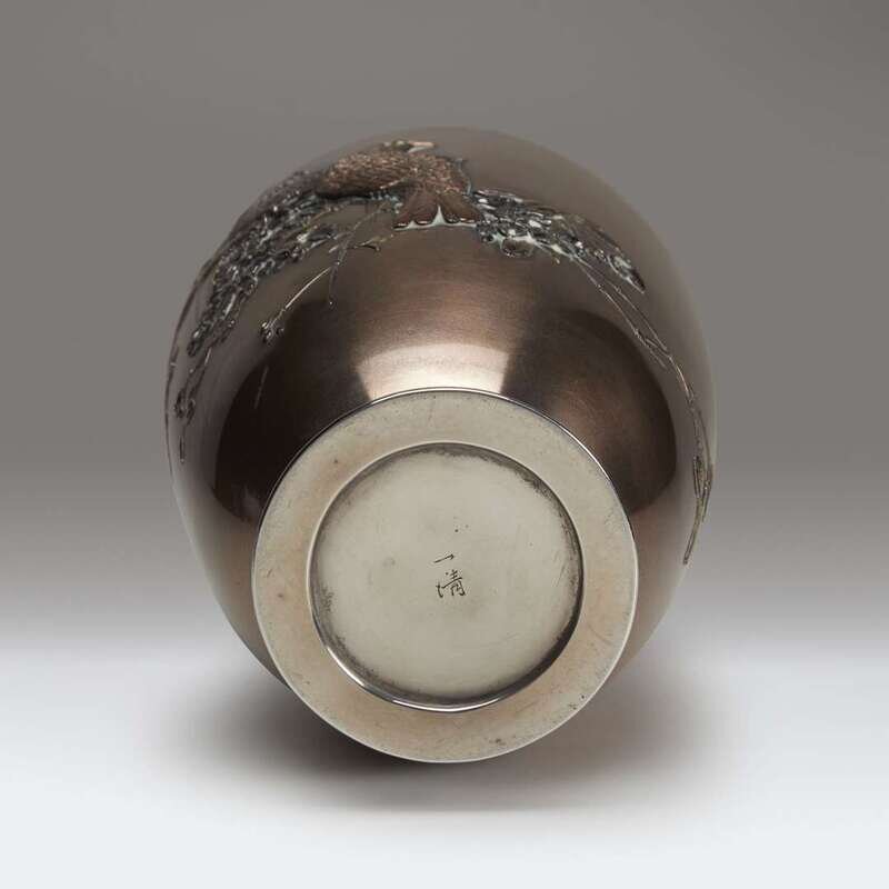 A Japanese mixed-metal and silver vase, signed Hasegawa Issei Meiji period