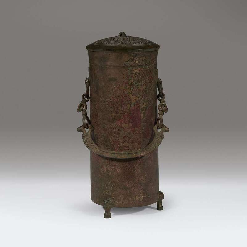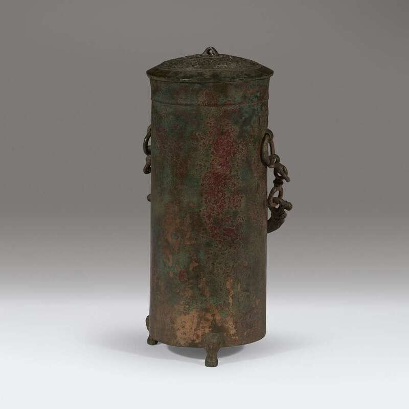 A Chinese archaic bronze cylindrical covered vessel, Lian Warring States/Han Dynasty