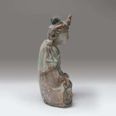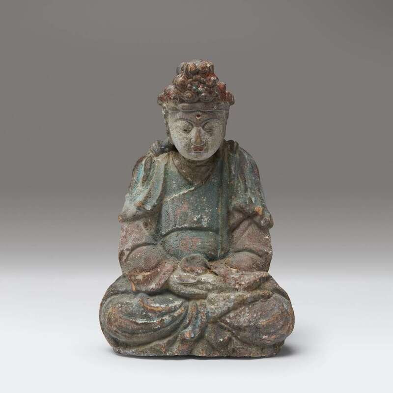 A small Chinese carved and painted wood figure of a seated bodhisattva Yuan/Ming dynasty