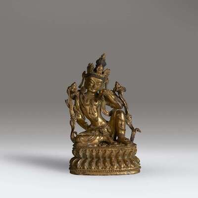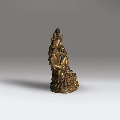 A Nepalese or Tibetan gilt copper alloy figure of a bodhisattva 15th century