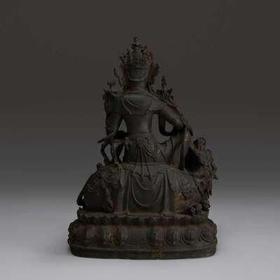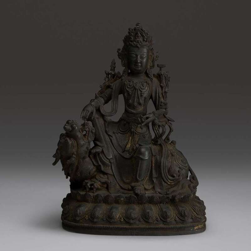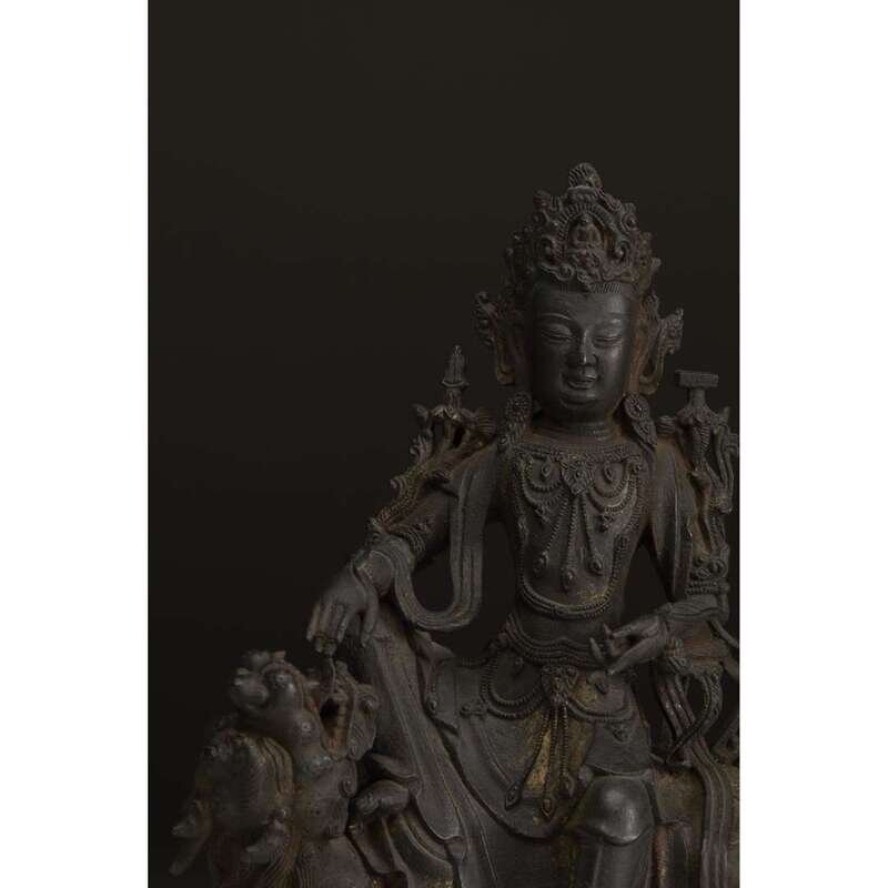 A Chinese bronze figure of the bodhisattva Wenshu seated on a lion Ming dynasty