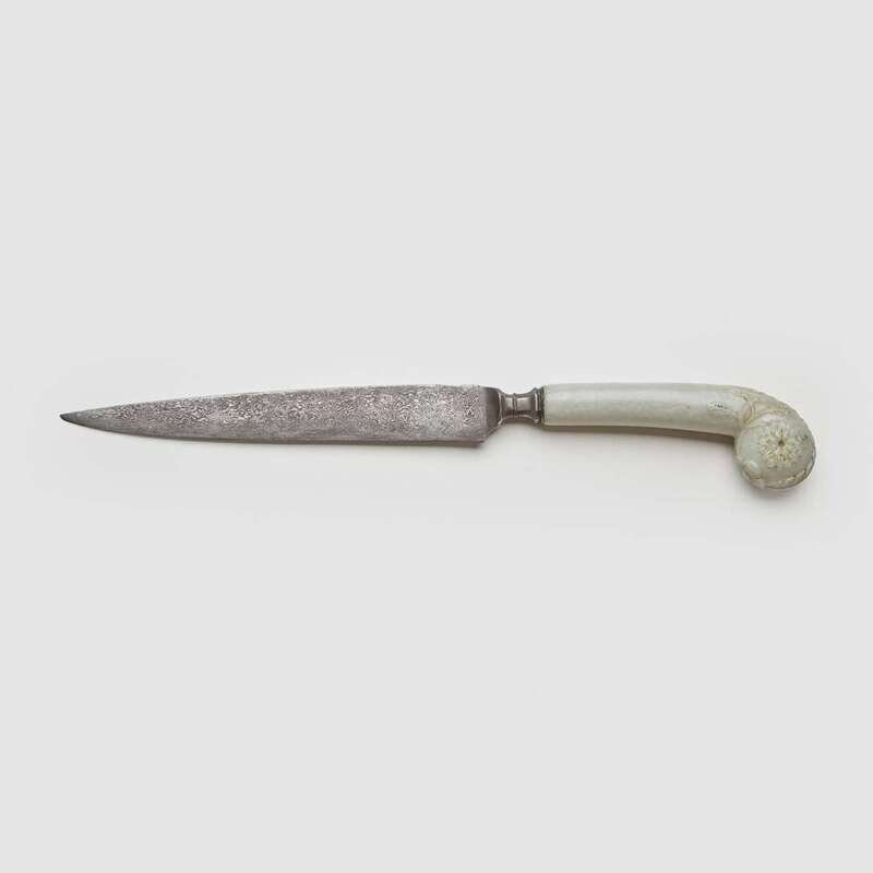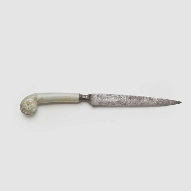 A Mughal kard dagger with carved pale celadon jade hilt 18th/19th century or earlier