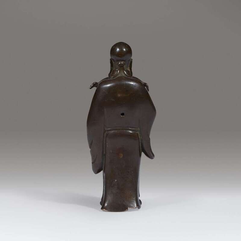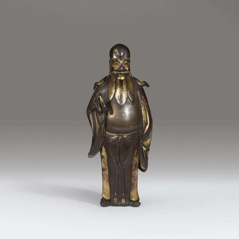 A small Chinese parcel-gilt bronze figure of an immortal 17th Century