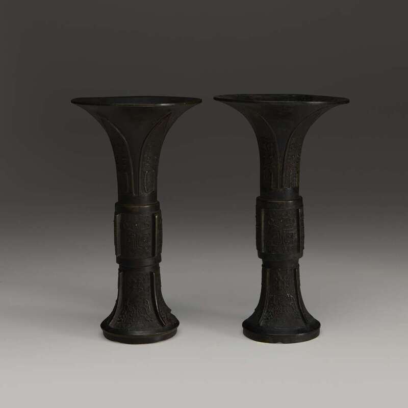 An associated pair of Chinese patinated bronze archaistic gu-form vases late Ming/early Qing dynasty, 17th/18th century