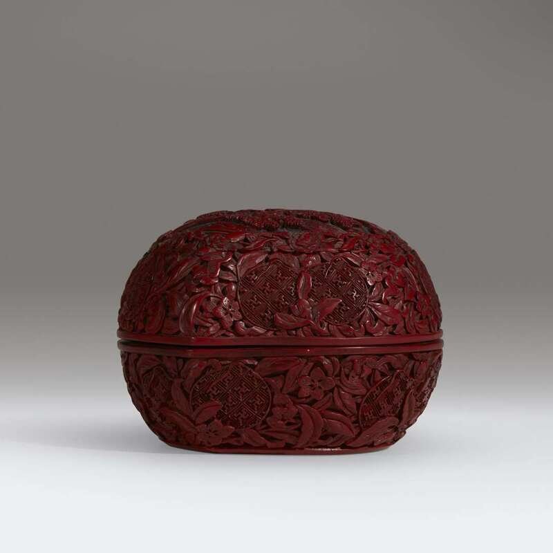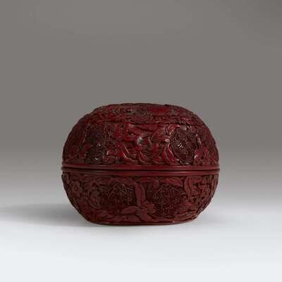 A Chinese finely-carved cinnabar lacquer "Peach" box Qing dynasty, 18th/19th century