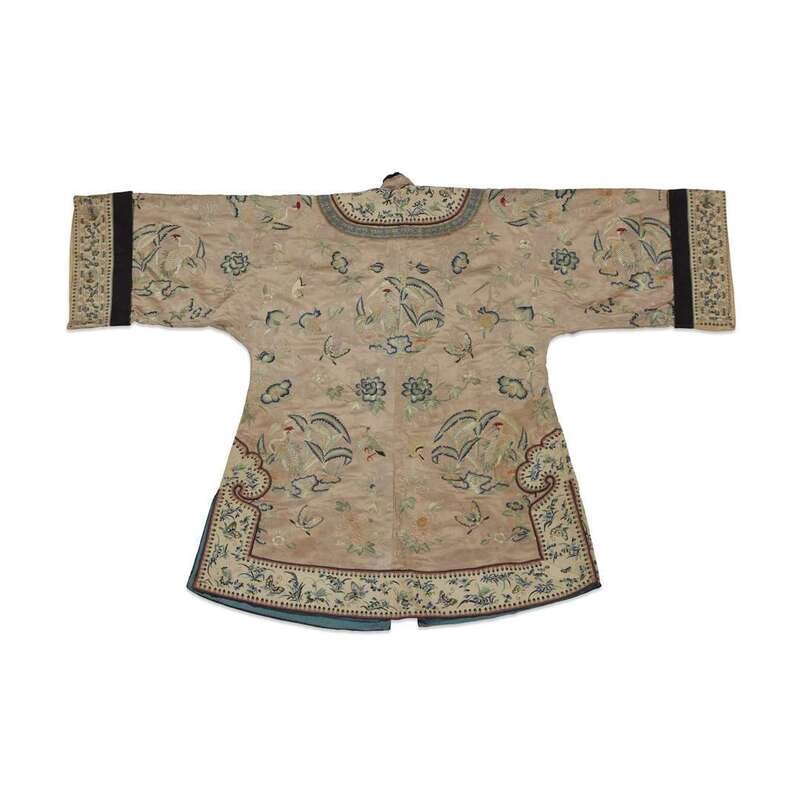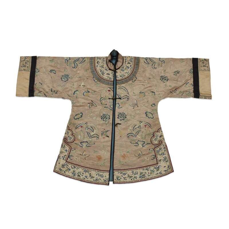 A Chinese embroidered pale pink silk ladies surcoat late Qing dynasty