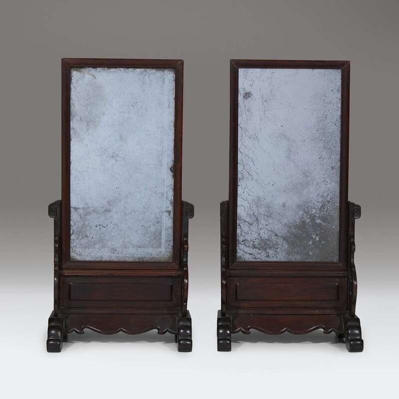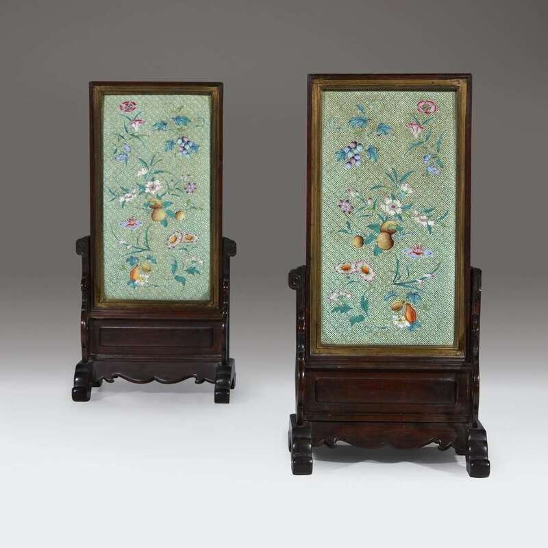 A pair of Chinese enameled copper mirror-back table screens Qing dynasty