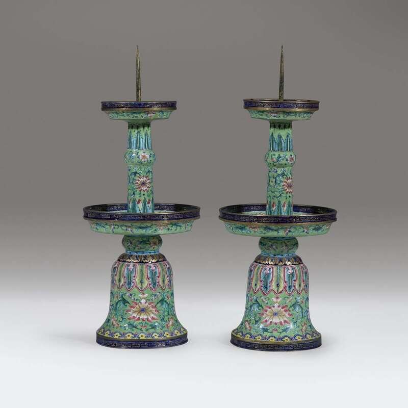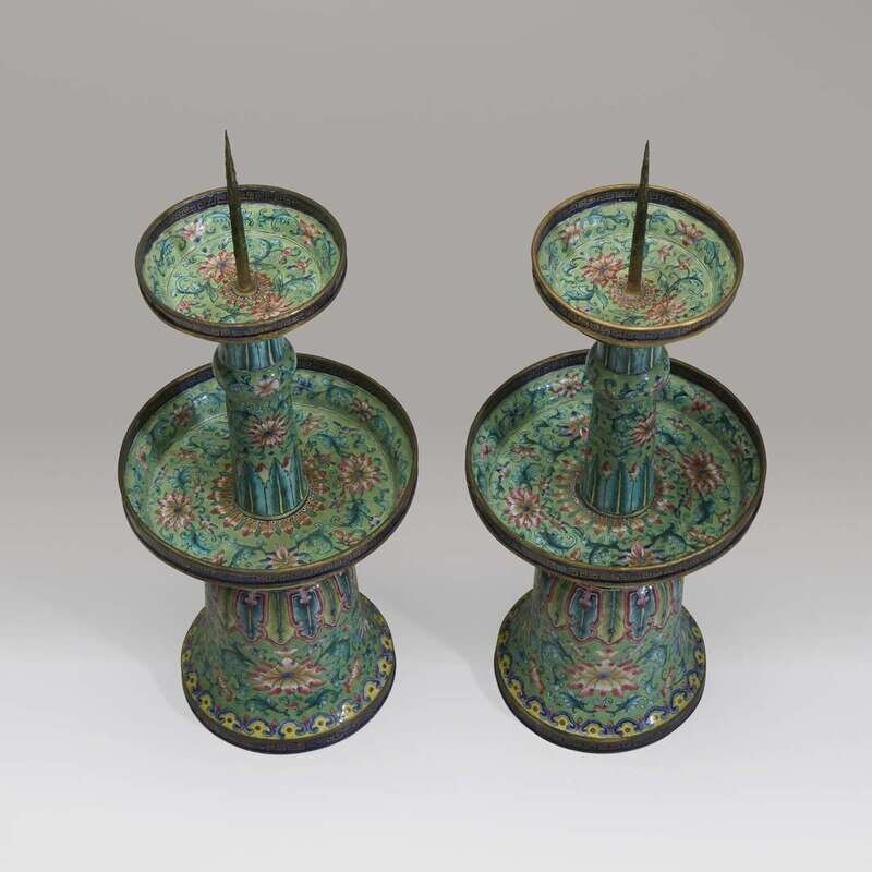 A pair of Chinese enameled copper pricket candlesticks Qing dynasty