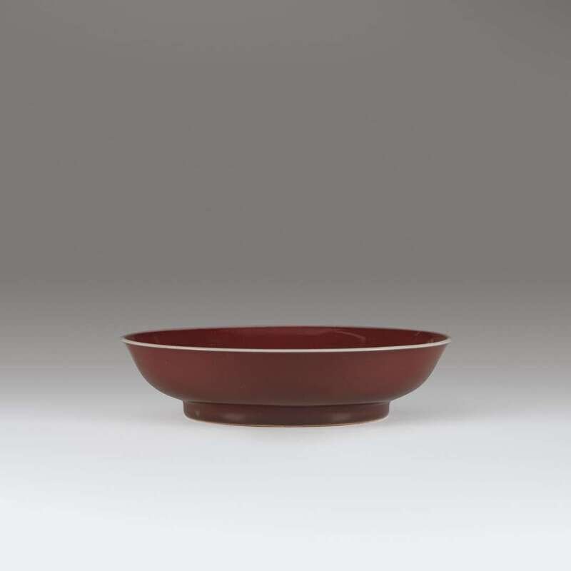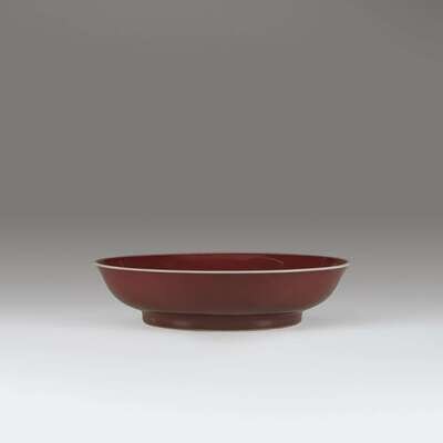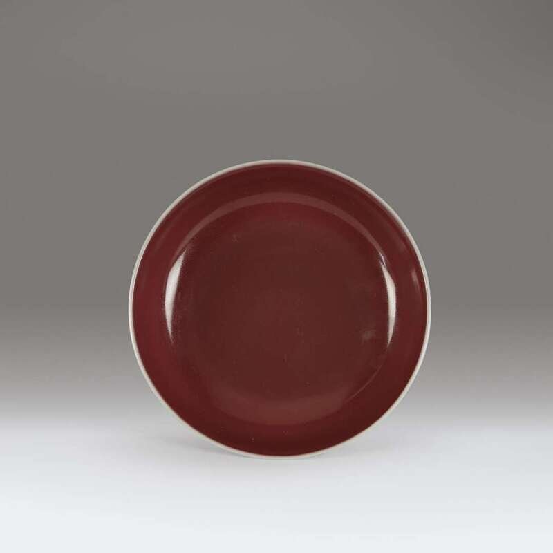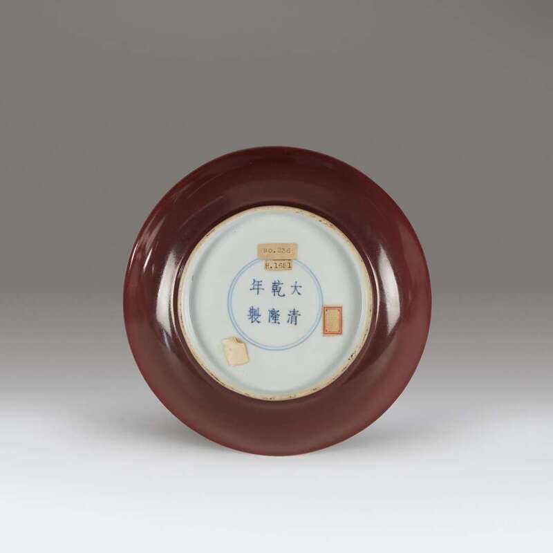 A Chinese copper-red glazed porcelain dish Qianlong six-character mark and of the period