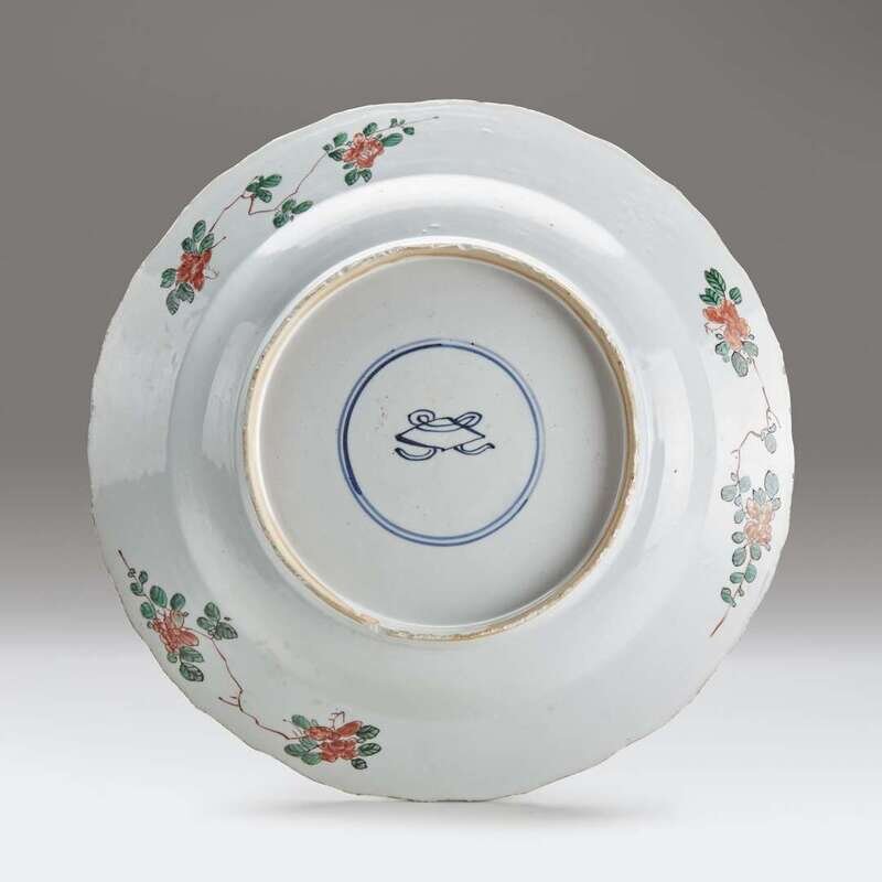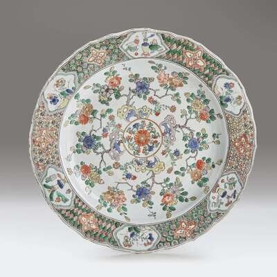 A large Chinese export porcelain famille verte charger Kangxi period