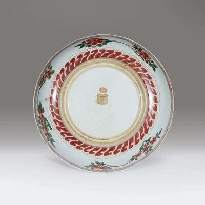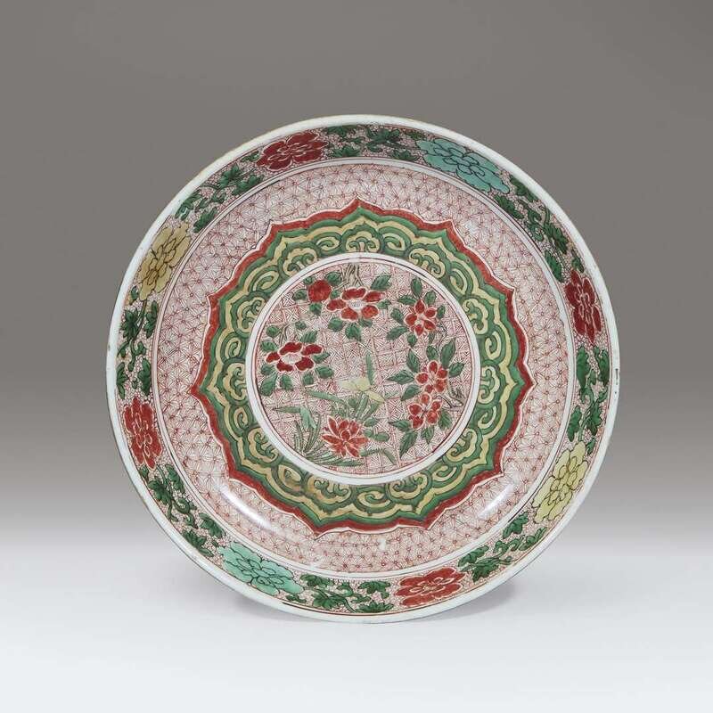 A Chinese famille verte-decorated porcelain large dish Kangxi period, late 17th century