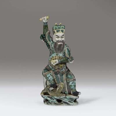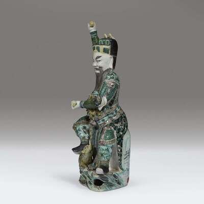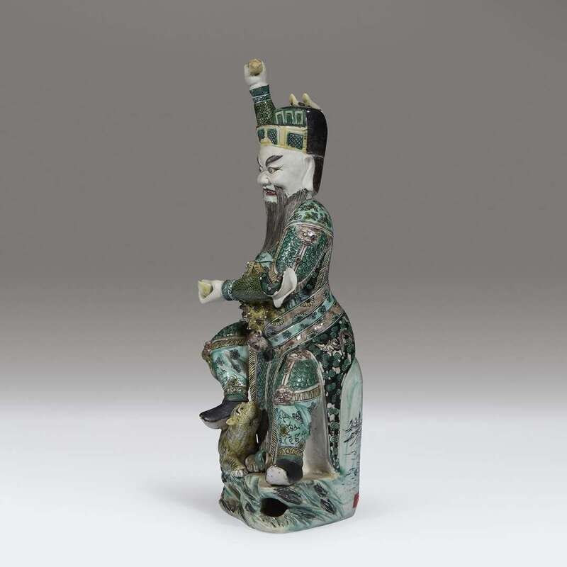 A Chinese famille verte-decorated porcelain figure of Caishen in wrathful guise 18th/19th century