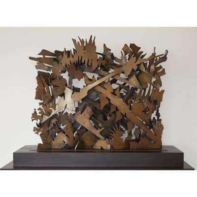 H: 38 1/2, W: 46, D: 10 in. (sculpture only), H: 80, W: 60, D: 20 in. (overall, with base and plinth)