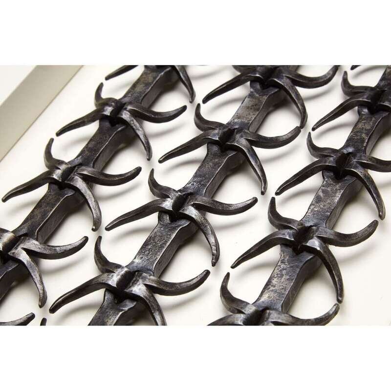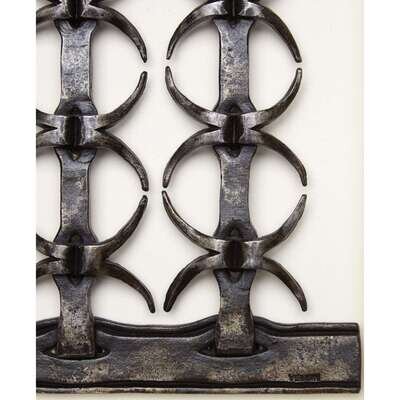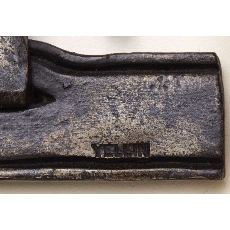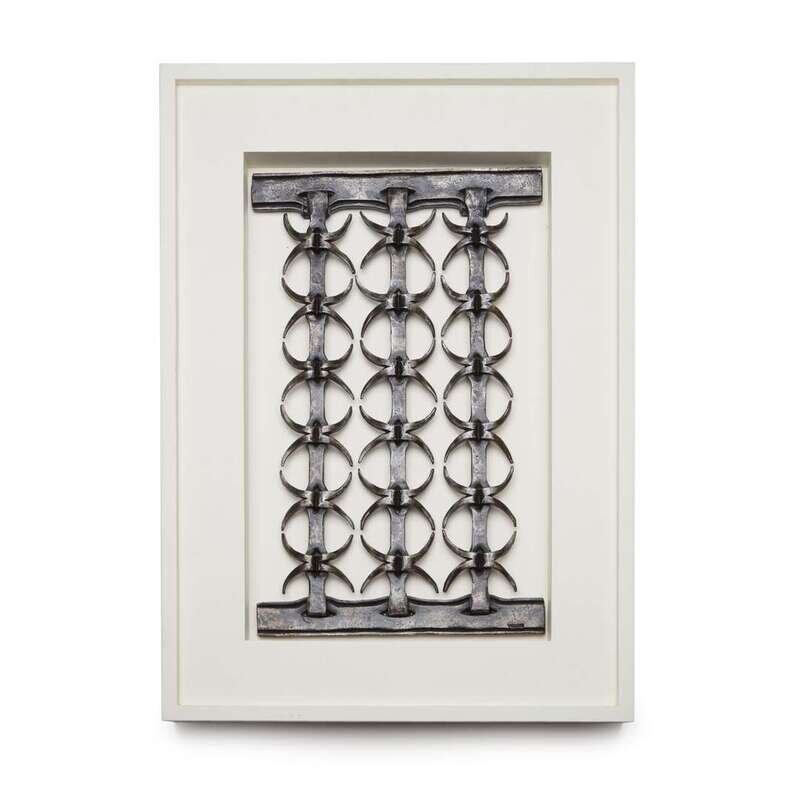 Patinated wrought iron, mounted in custom wood frame Signed with impressed stamp: "YELLIN"