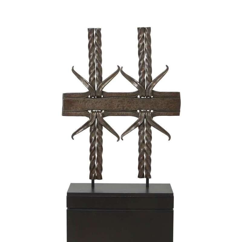 Wrought iron with Philadelphia finish, on custom mount and pedestal Signed with impressed stamp: "SAMUEL YELLIN" .