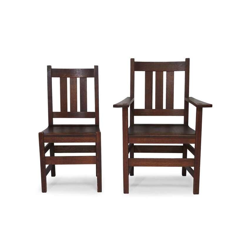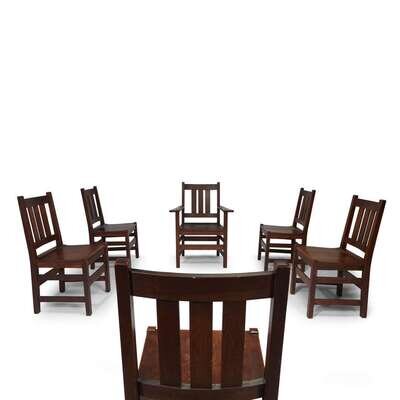 L. & J. G. Stickley (American, est. 1900) Group of Five Side Chairs and Armchair, Fayetteville, New York, circa 1912-1917