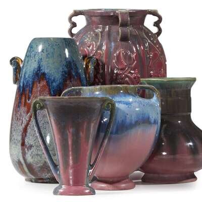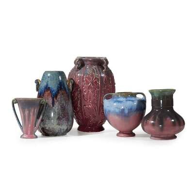 Fulper Pottery Company (1899-1935) Collection of Five Vessels, Flemington, New Jersey, early 20th century