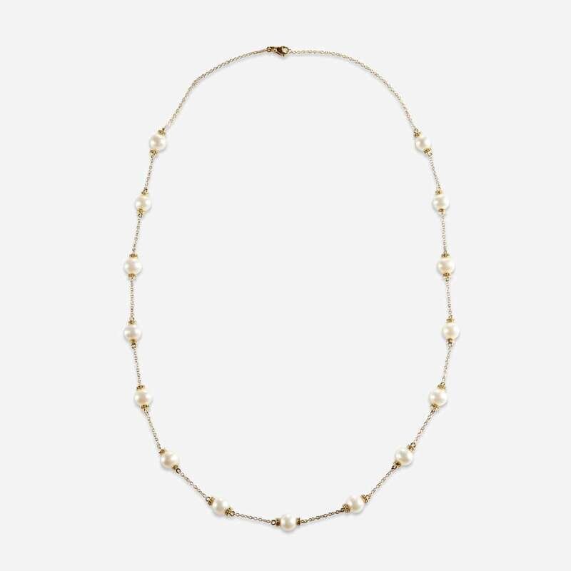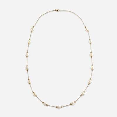 A cultured pearl and eighteen karat gold necklace