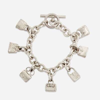 A sterling silver charm bracelet, Hermés