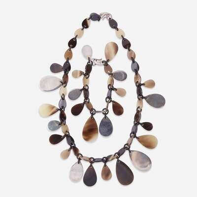 including a carved horn and sterling silver fringe bracelet and necklace suite.