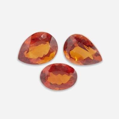 including two pear-cuts, each weighing approximately 9.50 or 9.25 carats, and an oval-cut, weighing approximately 6.70 carats.