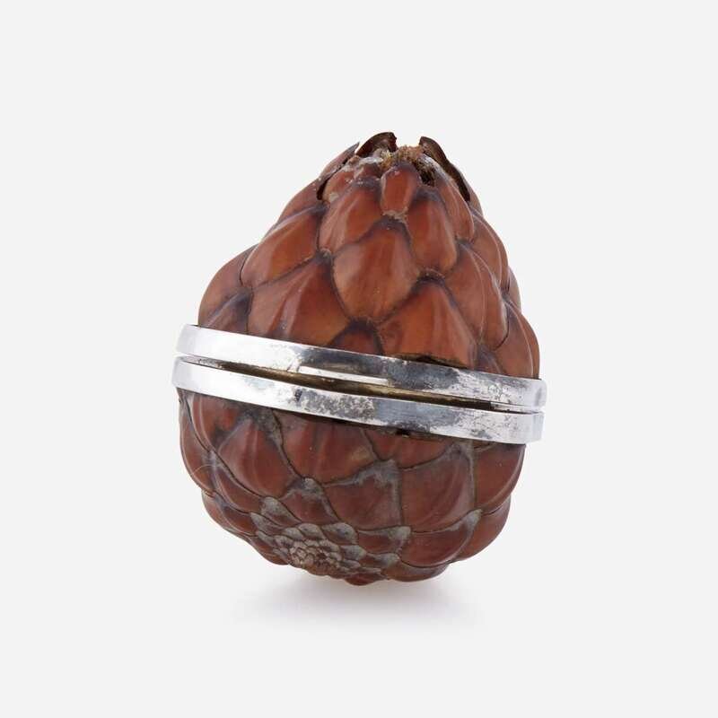 designed as a hollowed nut on hinged sterling frame.