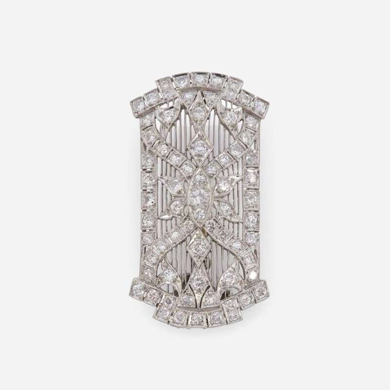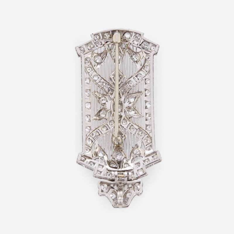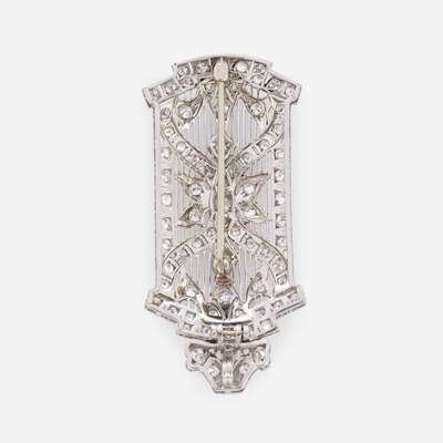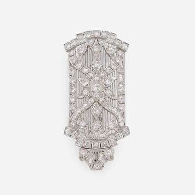 An Art Deco diamond and platinum pendant brooch
