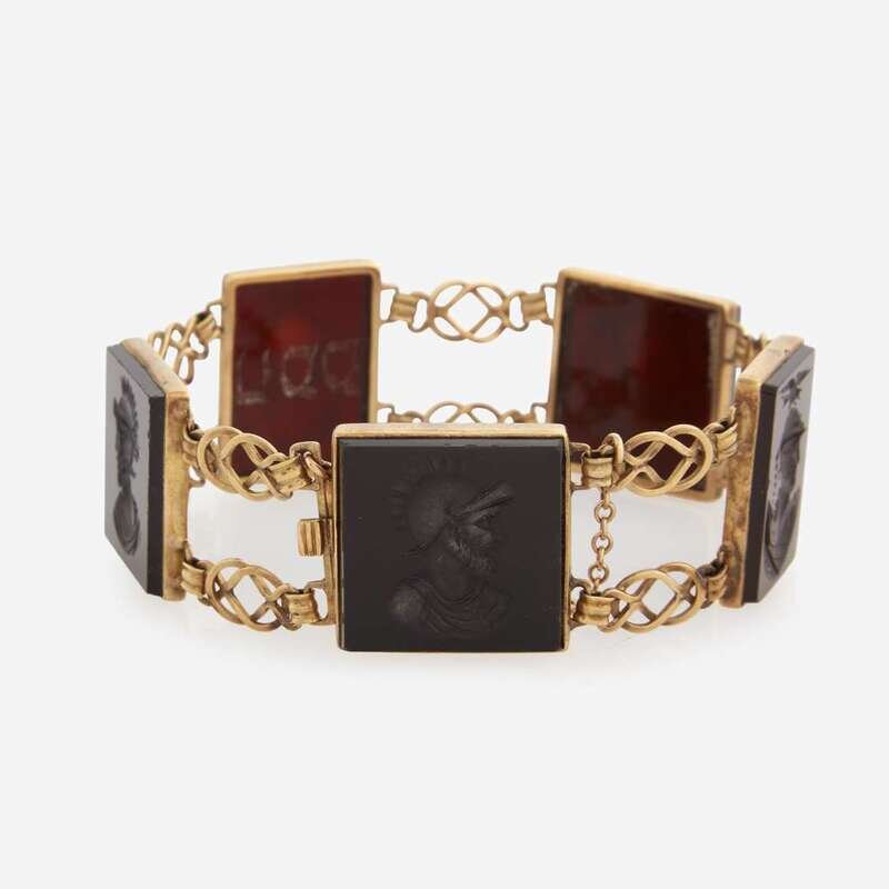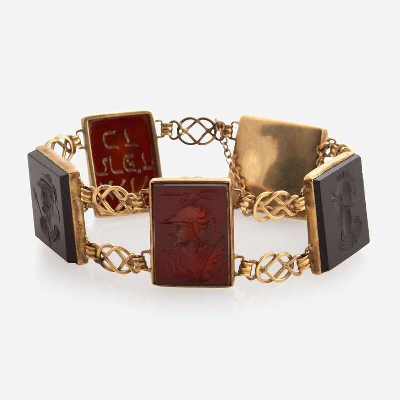 A hardstone and fourteen karat gold bracelet Early 20th century