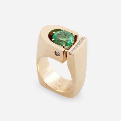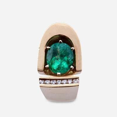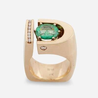 An emerald, diamond, and fourteen karat gold ring