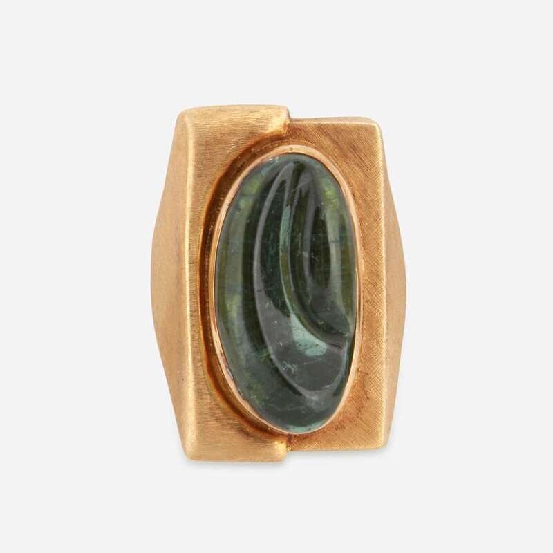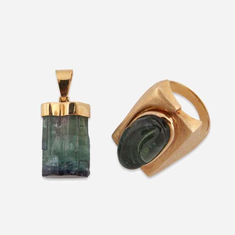 A green tourmaline and eighteen karat gold ring and pendant, Haroldo Burle Marx Brazil