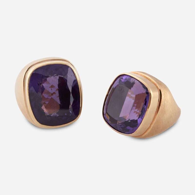 Two amethyst and eighteen karat gold rings, Haroldo Burle Marx Brazil