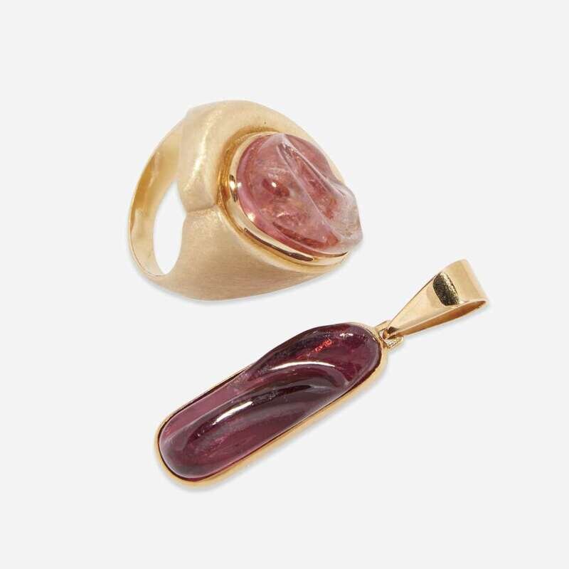 A pink tourmaline and eighteen karat gold ring and pendant, Haroldo Burle Marx Brazil