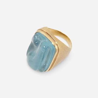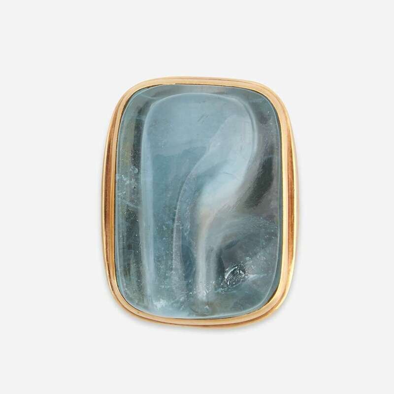 An aquamarine and eighteen karat gold pendant necklace and ring, Haroldo Burle Marx Brazil