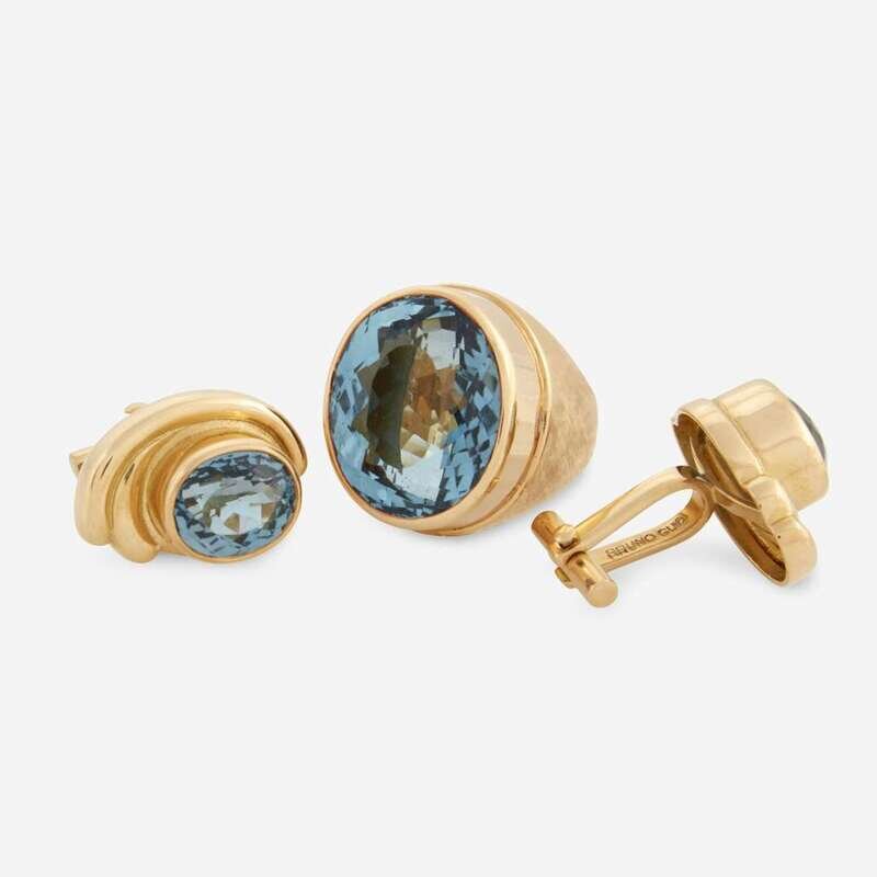 A blue topaz and eighteen karat gold ring and pair of cufflinks, Bruno Guidi and Haroldo Burle Marx Brazil