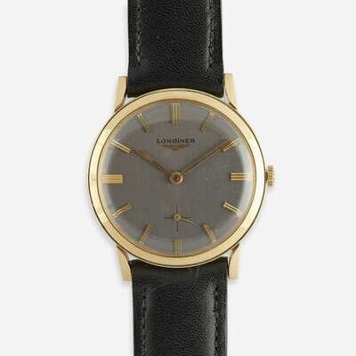 A collection of two fourteen karat gold strap wristwatches, Longines and Hamilton circa 1950's