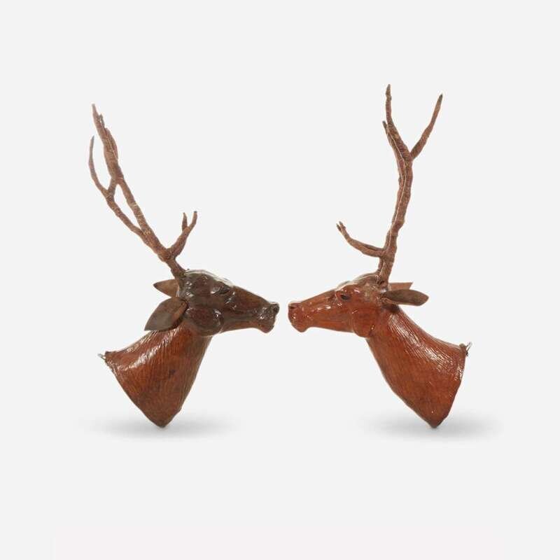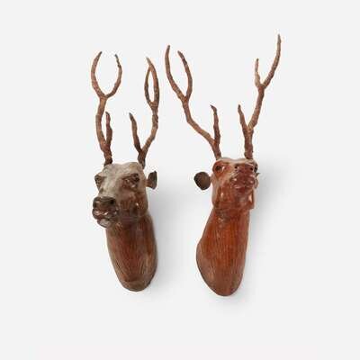 Pair of worked leather deer heads 20th century