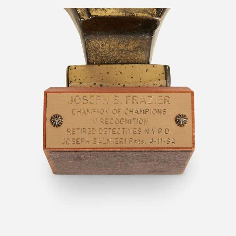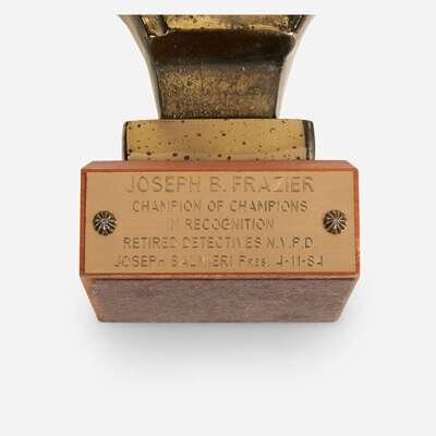 With plaque engraved "Joseph B. Frazier/ Champion of Champions/ In Recognition/ Retired Detectives N.Y.P.D./ Joseph Salmieri Pres. 4-11-84".