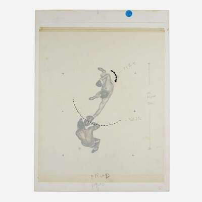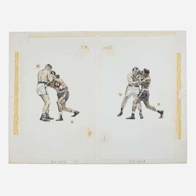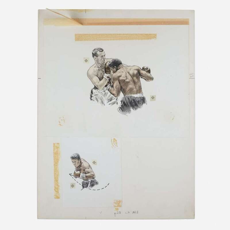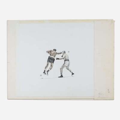 Pencil on paper, mounted on paperboard, together with Sports Illustrated, June 20, 1960, with article depicting Riger's drawings.